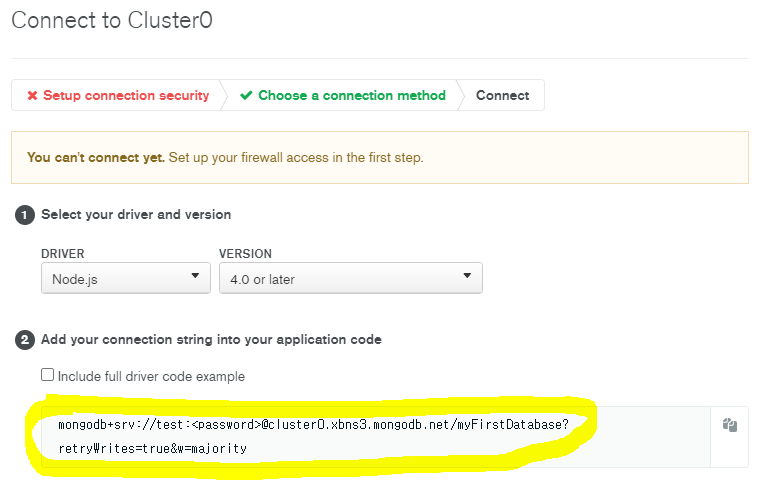 몽고DB 아틀라스에서 발급받은 본인 코드를 ID,PW,DB명을 입력하면 접속된다.