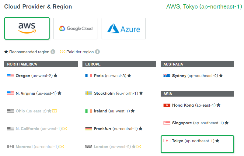 3. AWS든 Google Cloud든 아무거나 상관없이 선택 후 지역을 선택한다. 클러스터를 생성한다.