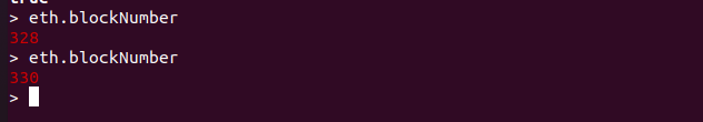true가 나오면서 현재 채굴중인것을 알수 있다. 채굴이되면서 시간이 지나면 블록이 쌓이는걸 알수있다.