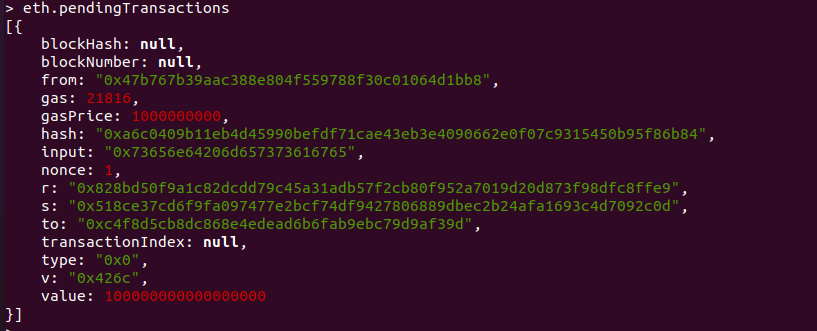 배열을 확인해보자! 명령어 eth.pendingTransactions