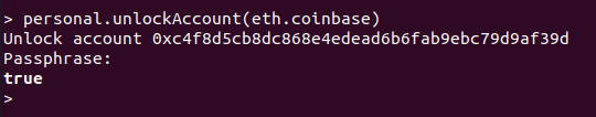 > personal.unlockAccount(eth.coinbase, "패스워드")