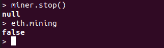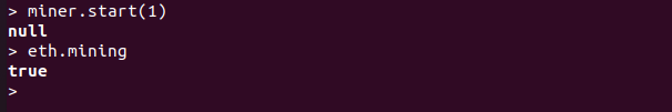 해당 명령어로 채굴을 시작할 수 있다. 1은 스레드 갯수이다. 명령어를 시작하고 채굴이 되고 있는지 eth.mining으로 확인해보자.