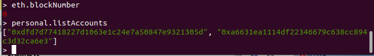 주의할 점은 go-ethereum 디렉토리가 있는 곳에서 geth를 실행하자. 아니면 네트워크가 활성화 되지 않는다. geth에 들어오면 명령어 입력창이 >로 바뀐다. eth.blockNumber를 찍어 블록을 확인해보자