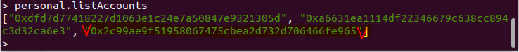 password를 넣어 post요청을 날리니 응답으로 생성된 지갑주소가 나오고 DB에 새 주소와 비밀번호가 저장된다. 몰론 Docker로 접속중인 geth에 personal.listAccount를 찍어보면 아래와 같이 나온다.