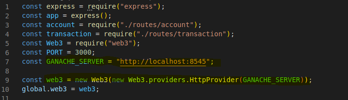 const web3 = new Web3(new Web3.providers.HttpProvider("http://localhost:8545")); 내 블록체인에 접근