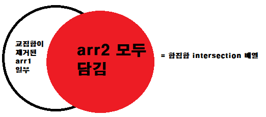 4. arr2의 length만큼 for문을 돌리는데 교집합과 합집합을 동시에 구하기 위해