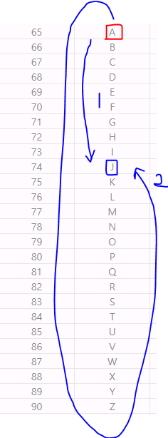 let start = 90 - i.charCodeAt(0) + 1;