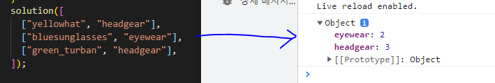 객체를 사용해 for문을 돌리며 동일한 의상의 종류가 객체에 키로 담겨져 있지않다면 value를 1로 { 의상이름 : 1 }를 만들어주고 해당 i번째 의상이름을 +1 올려주게 된다. 여기서 왜 1로 시작하냐면 의상 종류마다 입지않는 경우도 더해야하기 때문이다. 이렇게 만든 checkCloth라는 객체에는 현재 의상과 의상종류가 각각 담기게 된다.
