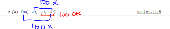 가장 큰값과 가장 작은 값을 더해서 받은 limit보다 작거나 같다면 보트에 실어 보낼 수 있다. 그렇지 않다면 다음값인 70과 가장 작은 값 50을 똑같이 더해본다. 만약 처음부터 둘의 합이 조건에 만족한다면 그안쪽으로 한칸씩 이동시켜 안에 두번째로 가장큰 값과 두번째로 가장 작은값을 비교하게 된다.