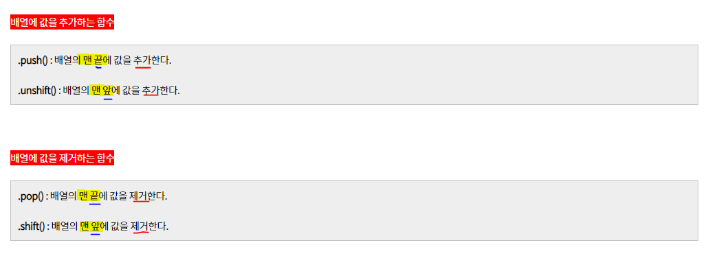 배열의 push, unshift, pop, shift