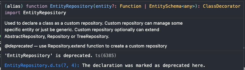* @description 기존 TypeORM 3.0 이하 버전에서 사용하던 EntityRepository을 데코레이터가 없어지면서 커스텀한 데코레이터