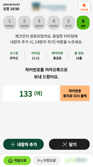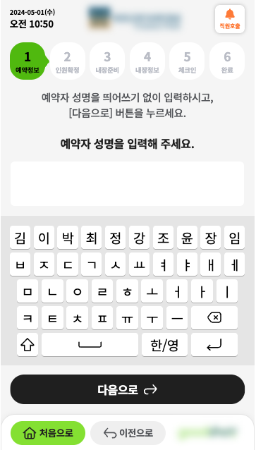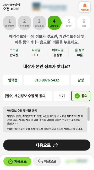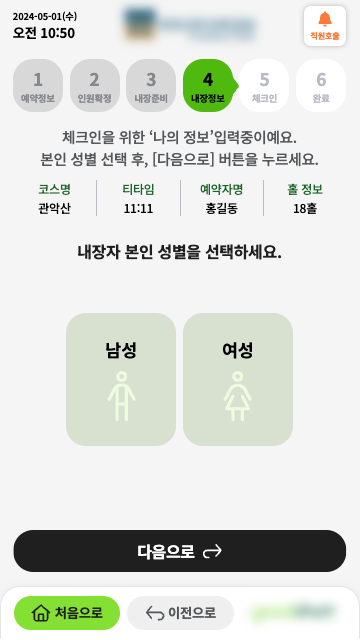 4. 내장객 정보 입력 (이름, 전화번호, 성별)