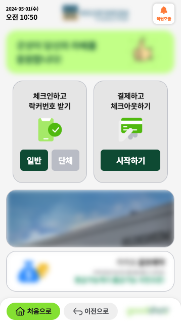 - 예약 조회·내장객 관리·락커 배정·결제 등 체크인 프로세스 UI 개발