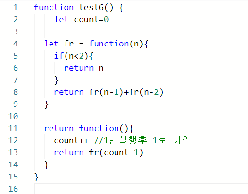*함수 한번 실행시 count를 1로 ++올리고 fr로 count-1하여 0이 fr(0)으로 들어가며 2보다 작을시 자기 자신인 0이 들어가게된다.
