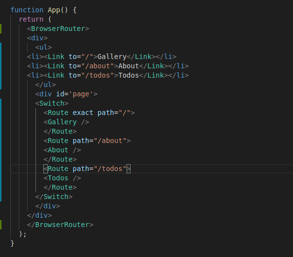 Route컴포넌트로 정확한 경로를 지정하여 내부에 든 나타나게 될 컴포넌트를 삽입한다.