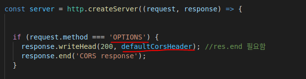 실제로 요청을 하게 되면 preflight로 cors가 먼저 처리되기 위해 메소드로 OPTIONS를 거치게되고 정상 조건일시