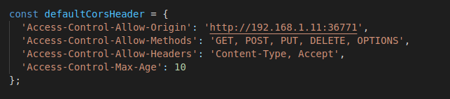 Cors 변수 선언을 통해 허락된 조건들만 메소드요청을 보낼수 있도록 하였다.