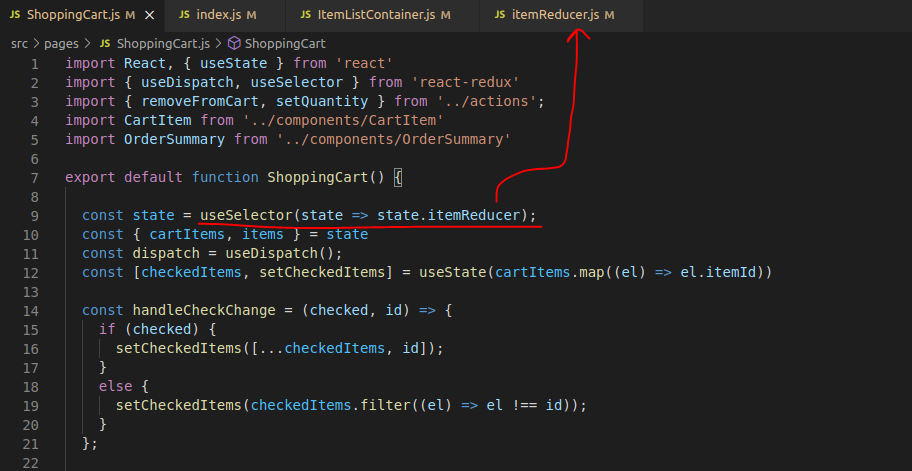 reducer.js에 담긴 state를 가져와서 메인 초기값으로 선언한다. useSelector()는 컴포넌트와 state를 연결하는 역할을 합니다. 컴포넌트에서 useSelector 메소드를 통해 store의 state에 접근할 수 있는 것이죠.