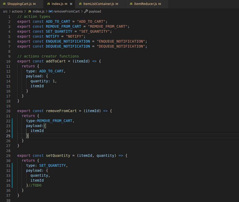action 함수로 만든 메소드에 인자를 담으면 action함수에 의해 type을 포함하는 action객체가 만들어지고 그 객체를 dispatch 함수를 통해 reducer로 보내게 된다. useDispatch()는 Action 객체를 Reducer로 전달해주는 메소드입니다. Action 이 일어날만한 곳은 클릭 등의 이벤트가 일어나는 컴포넌트겠죠.