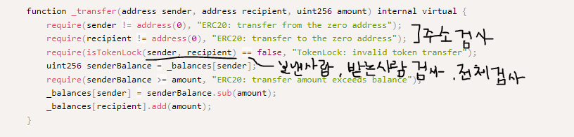isTokenLock은 보내는사람,받는사람,전체락에 대한 검사를하여 lock상태를 리턴한다.